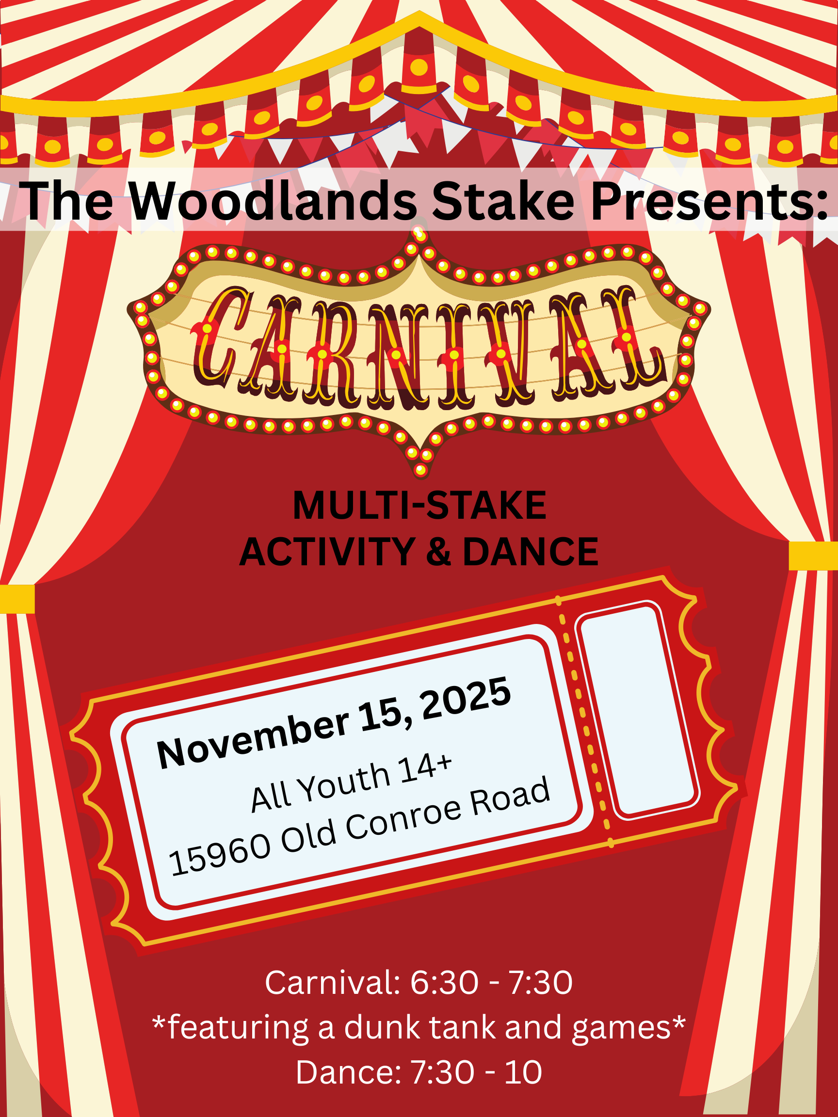 - Saturday, November 15 – Multi-Stake Carnival & Dance (14+)
