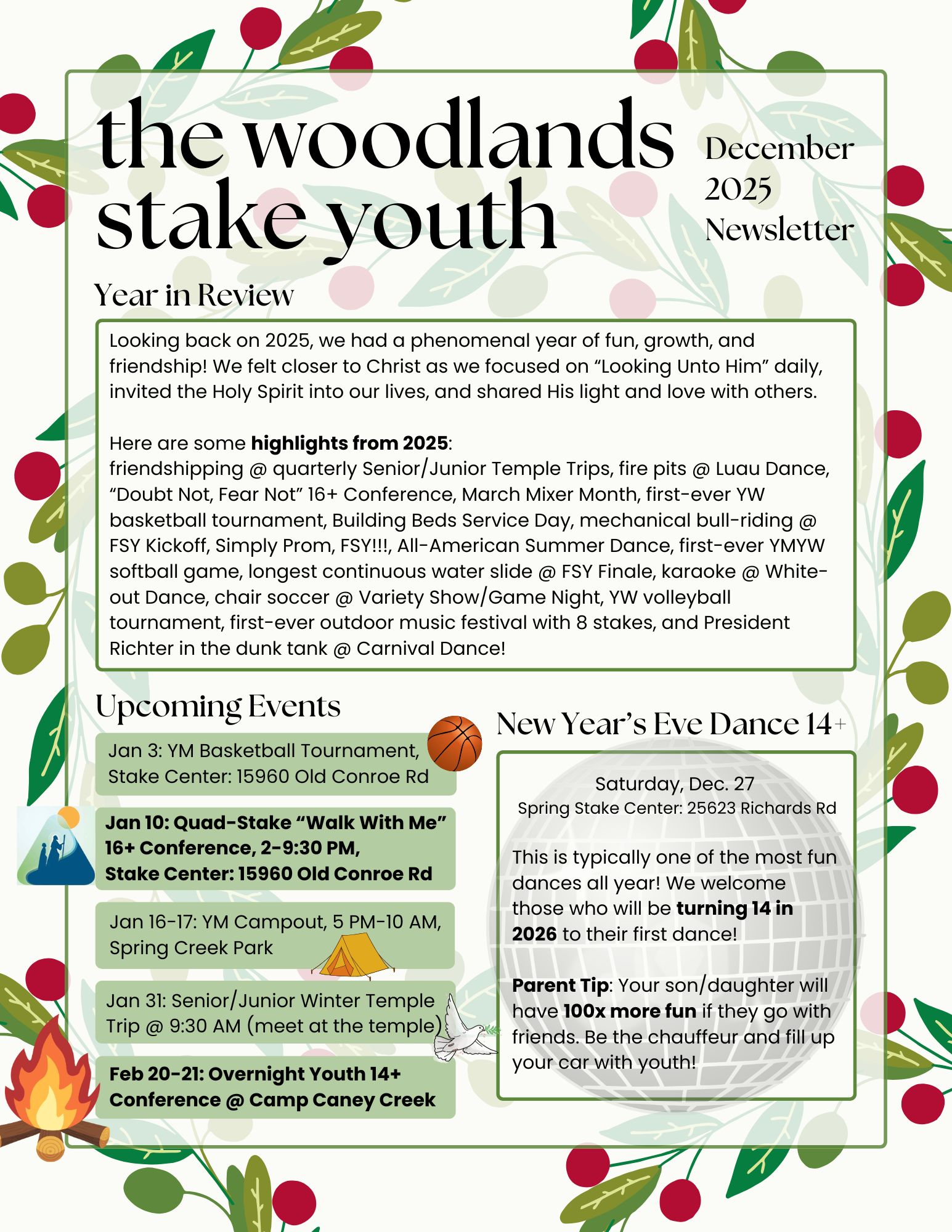 - Wednesday, December 31 – Glitz & Glow New Year’s Eve Multi-Stake Dance (14+)